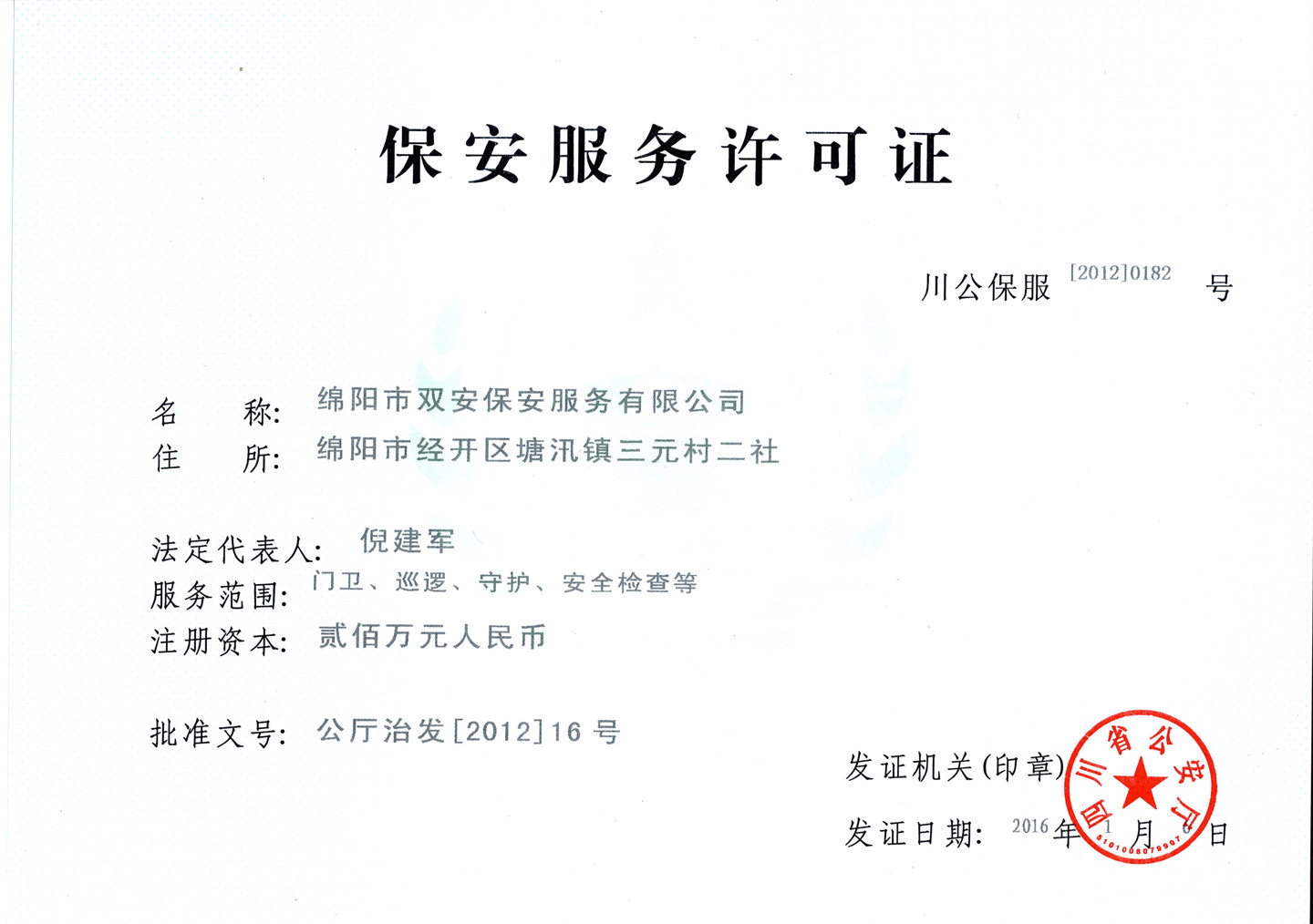 綿陽(yáng)市雙安保安服務(wù)有限公司
