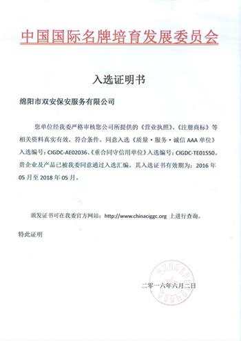 中國國際****培育發(fā)展委員會(huì )入選證明書(shū)